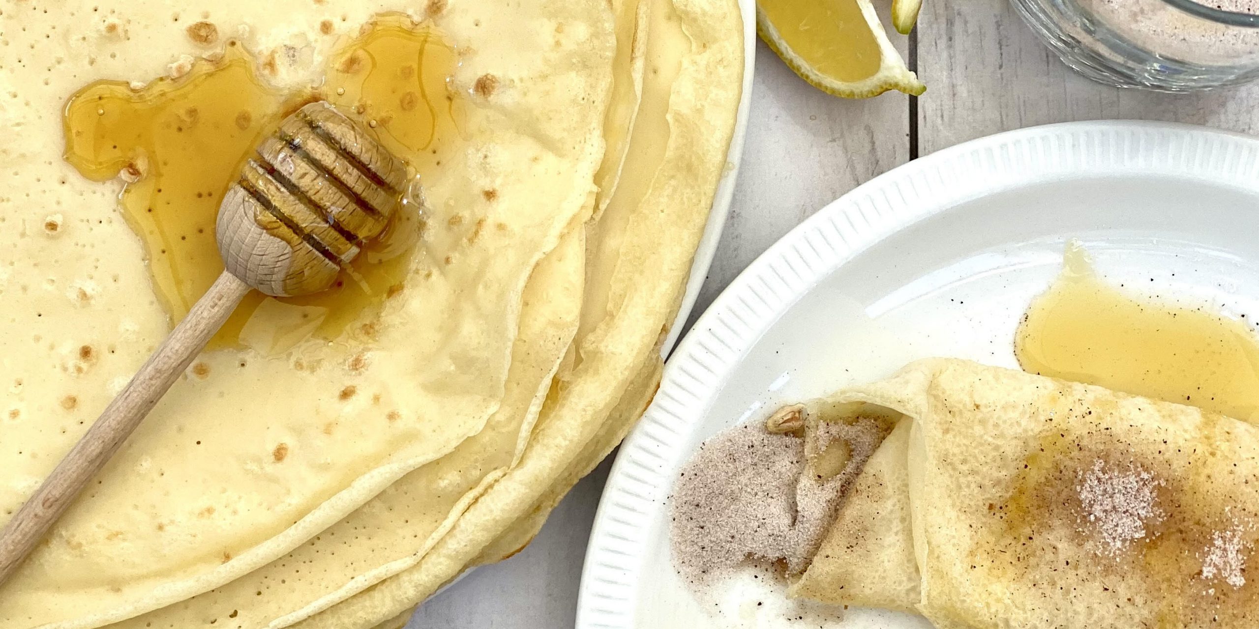 Sprinkle with cinnamon sugar, drizzle with honey and a squeeze of lemon. Roll up and serve immediately.