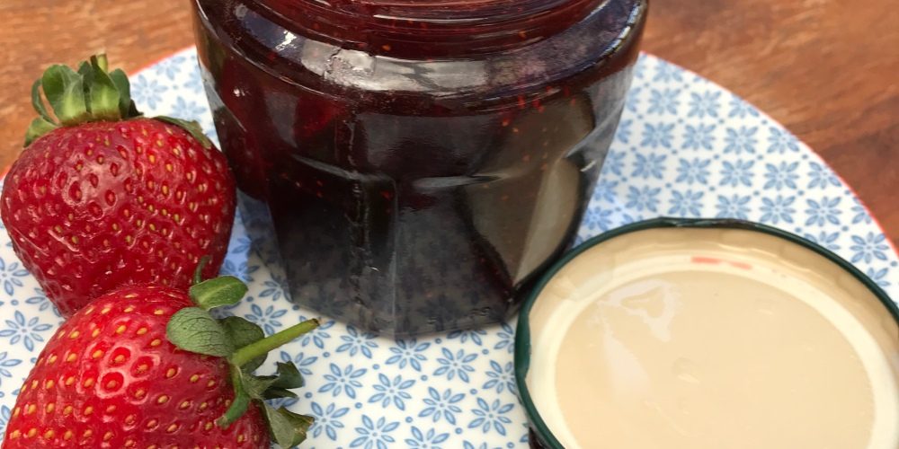 Stir well until the Xylitol is dissolved. Don’t let the jam boil until you can’t see any sugar crystals.